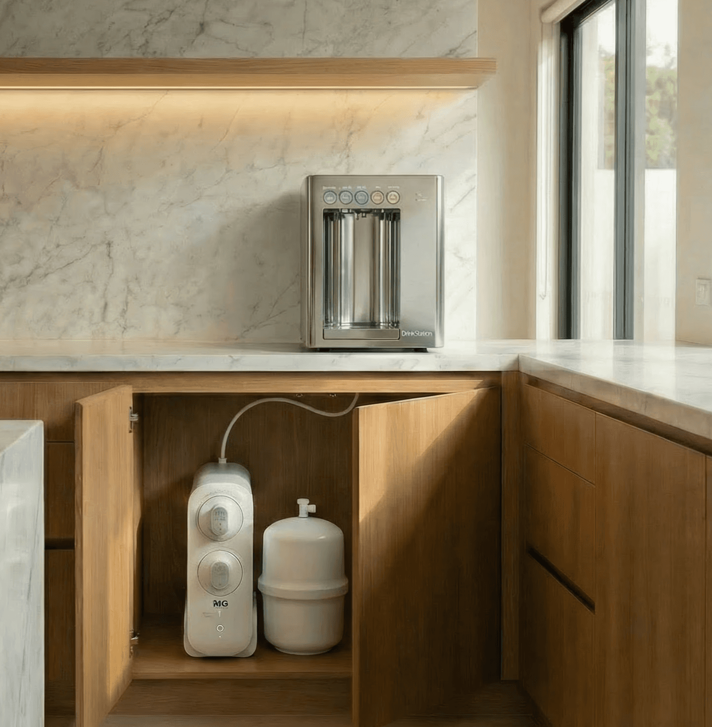Most filters leave behind lead, microplastics, chlorine, and 100+ other contaminants. Most dispensers store water in a tank where bacteria grow. Drinkstation solves both — for good.