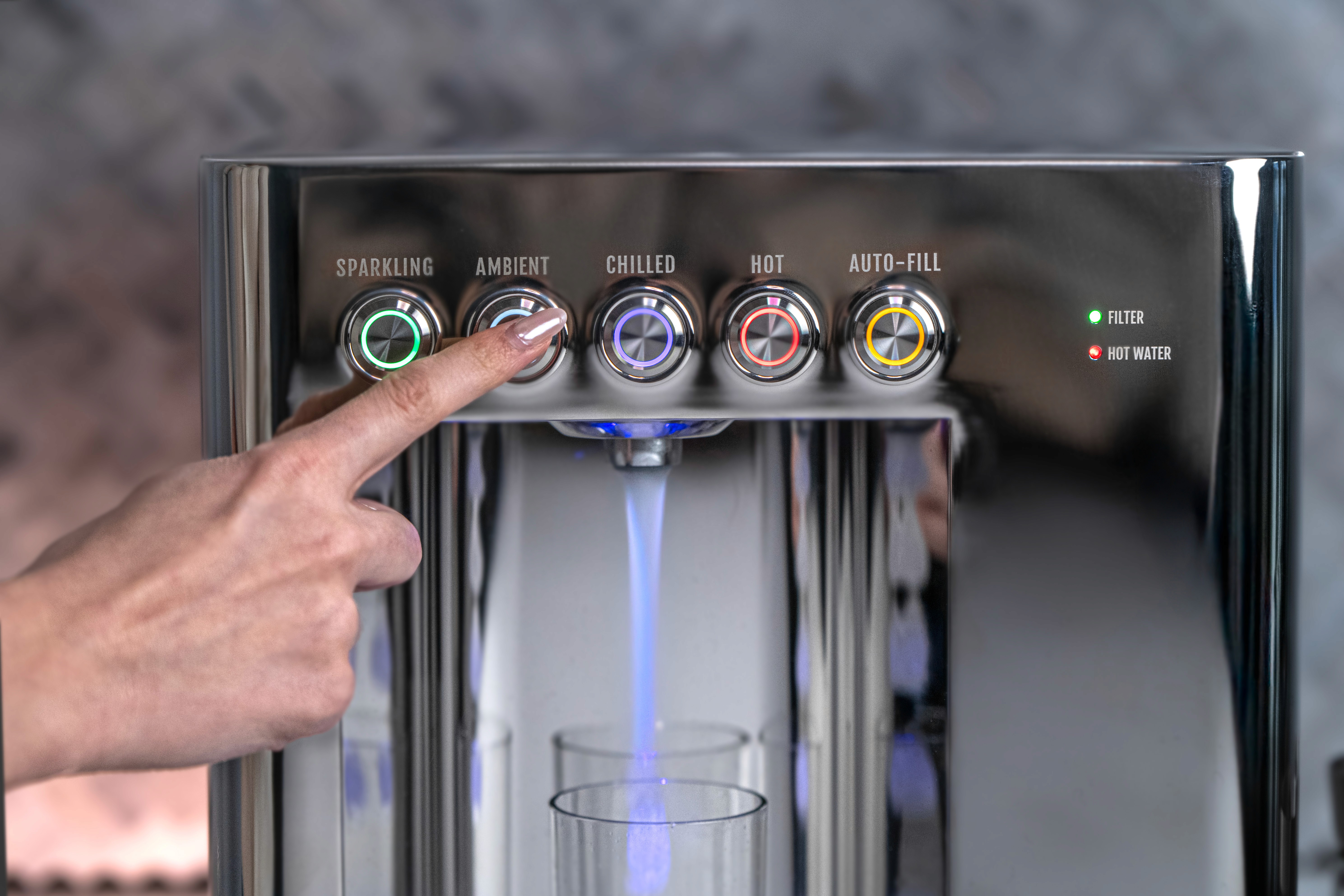 Commercial-grade performance in an ultra-compact format. Fill up to eight 16oz bottles per minute with chilled or sparkling water.